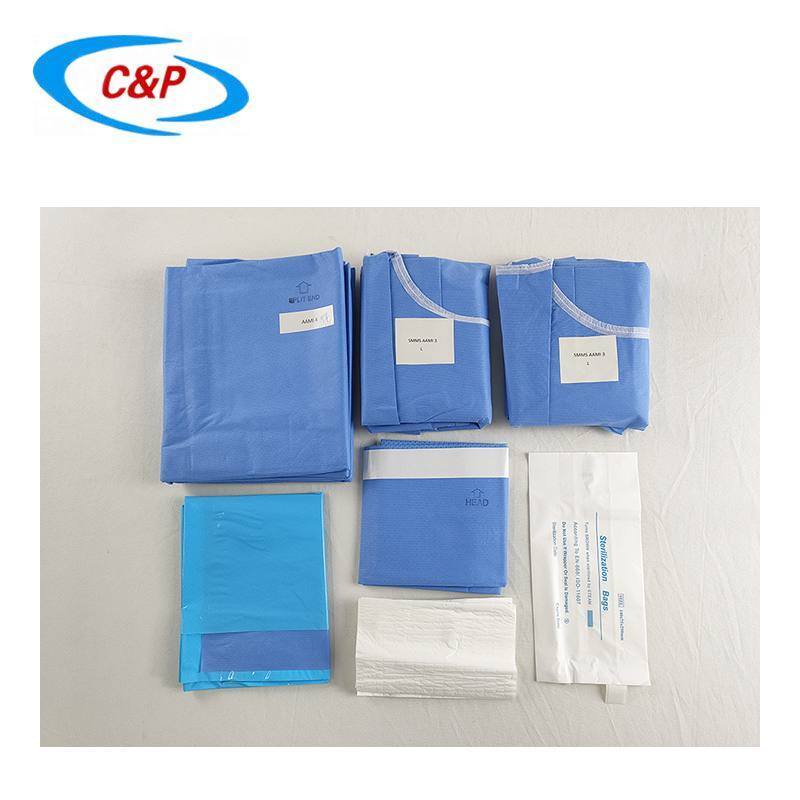 | 内容物 | 1pc U字型スプリットドレープ 195x315cm、1pc ターバン型ドレープ 70x100cm、1pc バックテーブルカバー 140x230cm、外科医用ガウン2着(レベル3、サイズL)、ハンドタオル2枚 40x50cm、メーヨー台カバー1枚 58x137cm、縫合糸バッグ1個 |